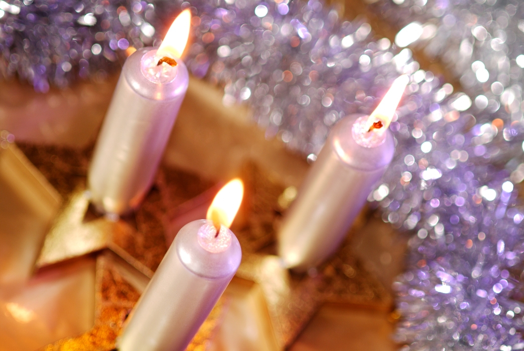 Three Christmas Candles with Flames